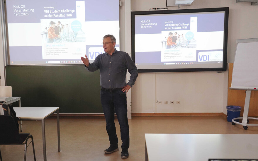 Zum Auftakt der Challenge kamen alle Beteiligten bei einer Kick-off-Veranstaltung zusammen. Seitens der TH begrüßten Prof. Dr.-Ing. Johannes Teigelkötter, Organisator des Wettbewerbs von der Fakultät IWIN, sowie Prof. Dr. Ivo Schäfer, Vizepräsident für Studium, Lehre und Internationales, die Teilnehmenden und dankten dem VDI für die Unterstützung.