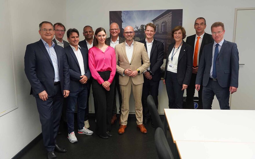 Digitalminister Mehring im Gespräch mit dem Leiter des KI-Regionalzentrums Unterfranken und Unternehmensvertretern