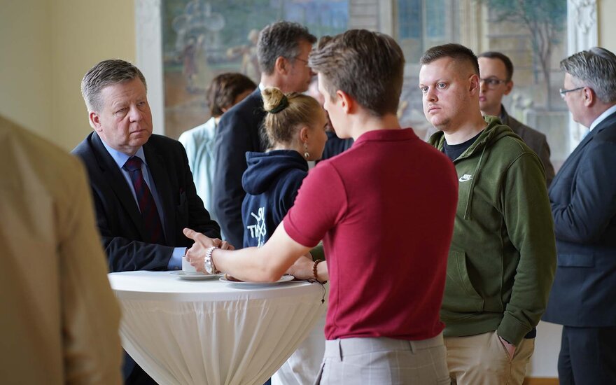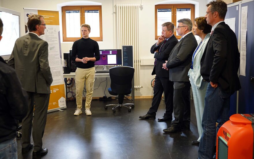 Auch für die innovativen Lehrprojekte, im Rahmen derer die Hochschule die Lehre gemeinsam mit Professorinnen, Professoren und Studierenden zukunftsorientiert weiterentwickelt, interessierten sich die beiden Politiker. Dabei nutzten sie die Gelegenheit, sich mit einigen Studierenden und Doktoranden persönlich auszutauschen, um etwas über deren Studium, Wünsche und Interessen zu erfahren.