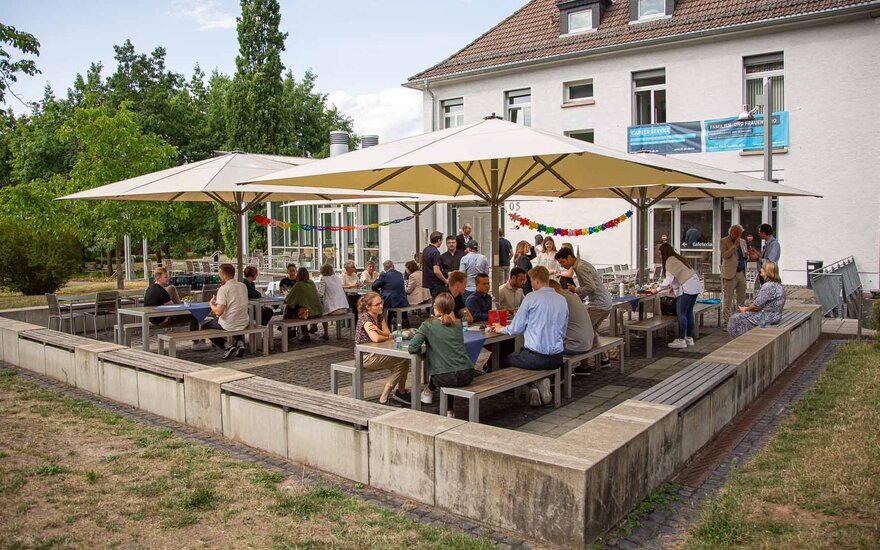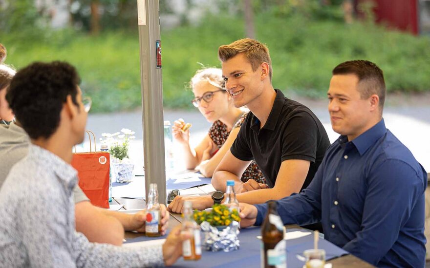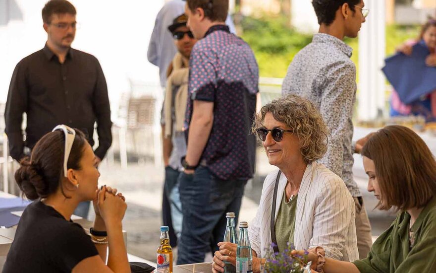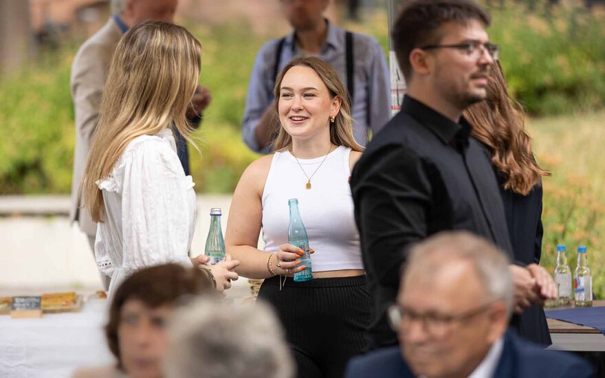 • Bei kalten Getränken und einem kleinen Imbiss hatten die Stipendiatinnen und Stipendiaten die Gelegenheit, in lockerer und gemütlicher Atmosphäre ihrer Förderer und Förderinnen kennenzulernen. (Foto: Bernd Ottow)