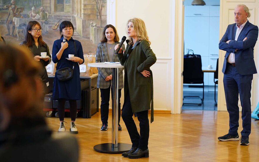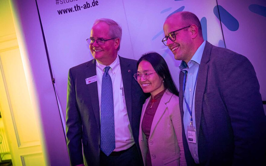 • Prof. Dr. Alexandra Angress, Auslandsbeauftragte der Fakultät Wirtschaft und Recht und Koordinatorin der GMS an der TH AB, begrüßt die Teilnehmenden