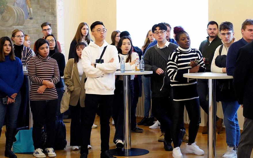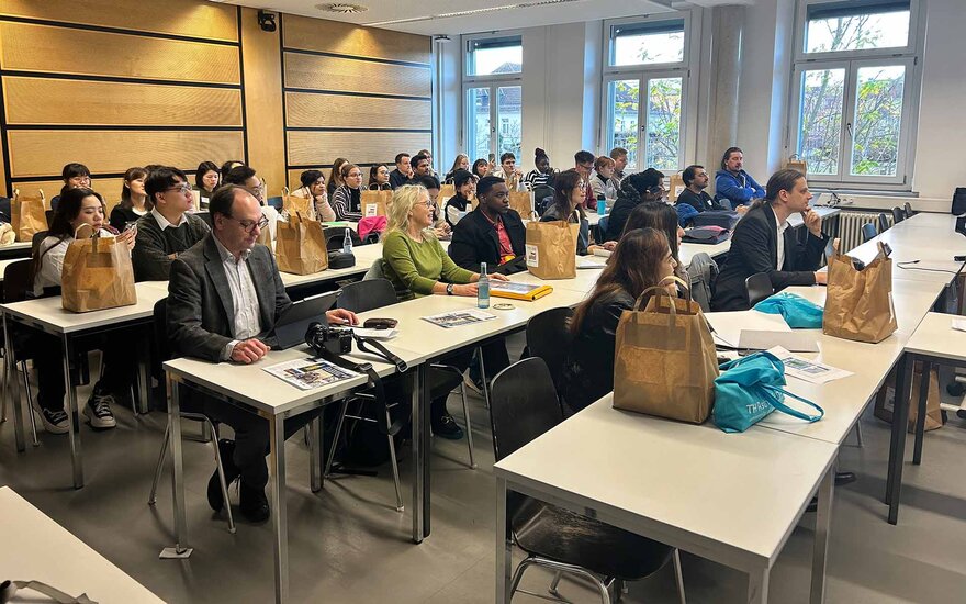 • Die Teilnehmenden der diesjährigen Global Master School bei der Auftaktveranstaltung im Hock-Saal der TH Aschaffenburg