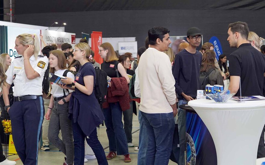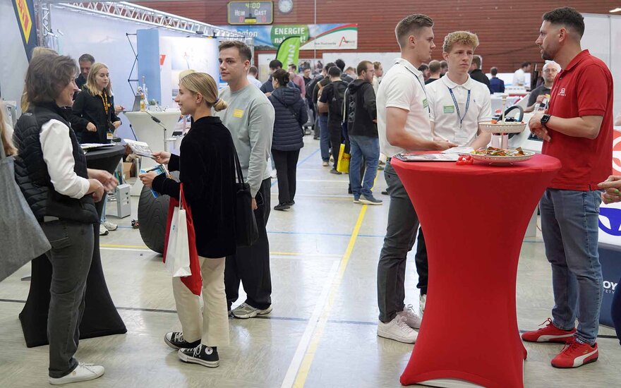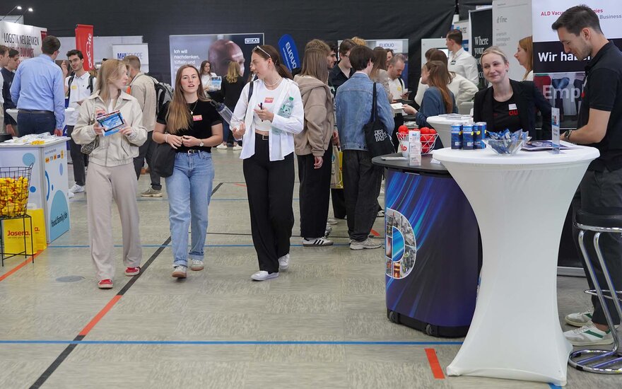 Die hochschuleigene Karrieremesse Campus Careers bot am Donnerstag rund 1400 Studierenden die Möglichkeit, in lockerer Atmosphäre mit potentiellen Arbeitgebenden ins Gespräch zu kommen und wertvolle Kontakte in Sachen Karriere zu knüpfen. Rund 70 Firmen und Organisationen aus der Region Bayerischer Untermain sowie überregionale Unternehmen informierten über Praktika, Abschlussarbeiten und Jobmöglichkeiten.