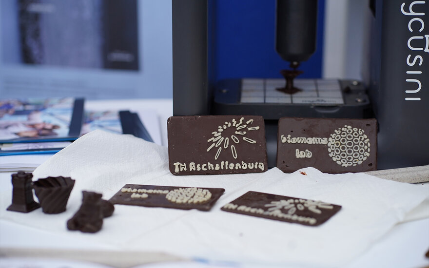 • Bio-Printing aus dem bioMEMS Lab: Für die Gäste am Studieninfotag gab´s das TH-Logo aus Schokolade aus dem 3D-Drucker. In der Medizin können solche Drucker auch für den Druck von Organen eingesetzt werden.