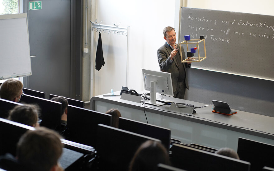 • Prof. Dr. Konrad Mußenbrock, Dekan der Fakultät Ingenieurwissenschaften und Informatik, beim Übersichtsvortrag zum Studium