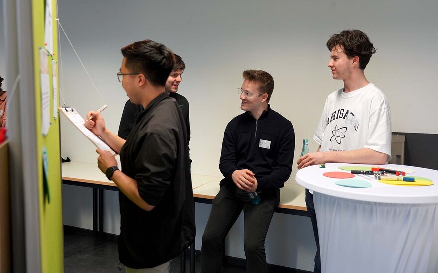 Anschließend bildeten Studierende und Lehrende die ersten Lerncommunities und diskutierten über den Umgang mit und die Anwendung von Künstlicher Intelligenz in den verschiedenen Fachbereichen, bei Studien-, Abschlussarbeiten und Prüfungen. Auch der Einsatz von KI in der Vorbereitung und Durchführung der Lehre und als Lernbegleiter von Studierenden waren Themen, zu denen sich die Teilnehmenden austauschten.