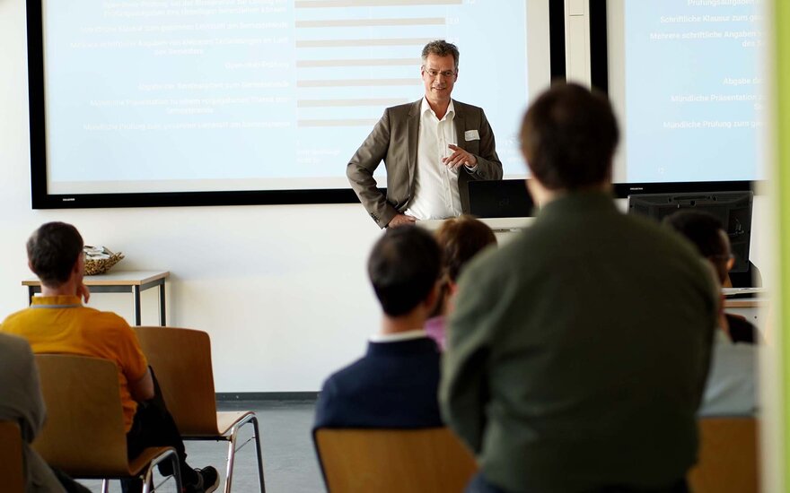 Vizepräsident Prof. Dr. Ivo-Schäfer präsentiert die Ergebnisse der Studierendenbefragung.