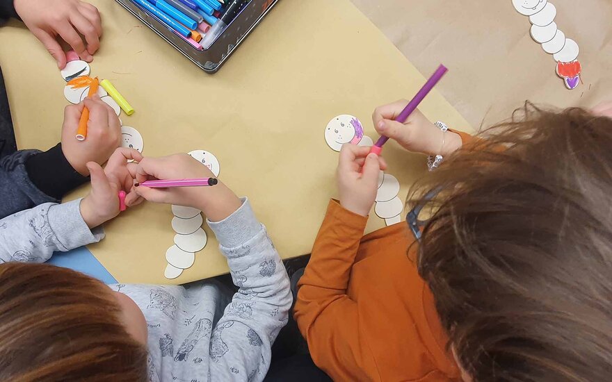 Zum Abschluss durfte jedes Kind ein Lesezeichen bemalen und mit nach Hause nehmen als kleine Erinnerung an den "gemeinsamen einzigartigen" Vorlesetag 2022.