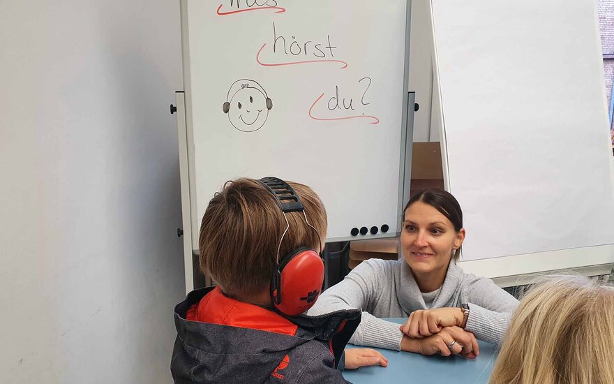 Nach dem Vorlesen durften die Kinder selbst aktiv werden und konnten eigene Erfahrungen mit Beeinträchtigungen der verschiedenen Sinneswahrnehmungen machen. Um eingeschränktes Sehen erleben zu können, bastelten sie eine Brille mit Folie, durch die sie nur noch die Farbe eines Igelbildes erkennen konnten, jedoch nicht die Kontur des Igels. Wie es ist, wenn man nicht richtig greifen und fühlen kann, erfuhren die Kinder beim Tasten mit einem Handschuh. Damit war es sehr schwierig, die Legosteine in die Hand zu nehmen. Das Sprachverständnis wurde mit einem Gehörschutz getestet, wodurch die Kinder natürlich vieles nur sehr undeutlich wahrnehmen konnten. Eine Einschränkung des Geruchs- und Geschmackssinns erlebten die Kinder, indem sie sich ihre Nase zuhielten und dabei Süßigkeiten probierten.