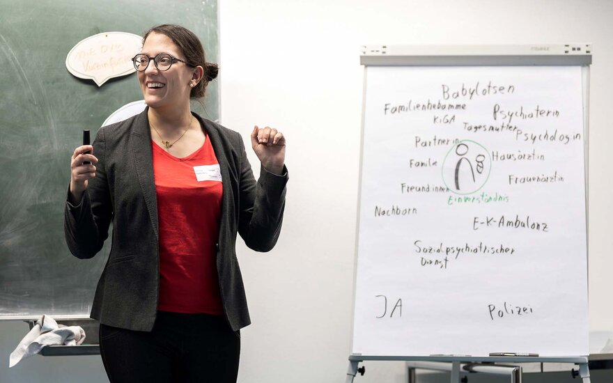 • Professorin Hemma Pfeifenberger von der TH Aschaffenburg leitete einen Workshop zum Thema "Praxisanleitung und Notfallmanagement in der ambulanten Betreuung".