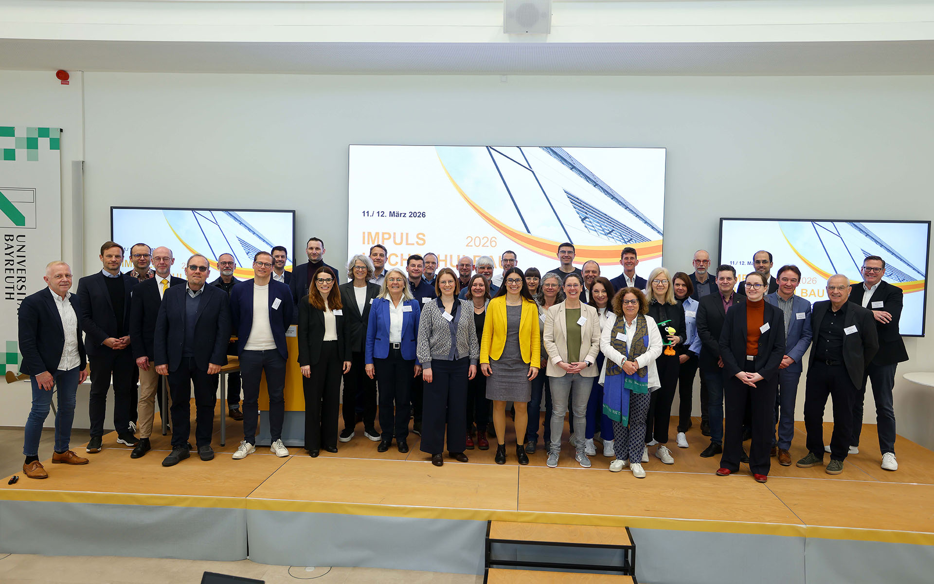 Rund 50 Vertreterinnen und Vertreter bayerischer und weiterer deutscher Hochschulen, staatlicher Bauverwaltungen und Fachinstitutionen trafen sich am 11. und 12. März 2026 an der Universität Bayreuth zur Tagung „Hochschulbau – Herausforderungen in Bayern gemeinsam begegnen“. Die zweitägige Veranstaltung wurde federführend von Dr. Heide Klug, Kanzlerin der TH Aschaffenburg, und Dr. Nicole Kaiser, Kanzlerin der Universität Bayreuth, organisiert. Im Mittelpunkt stand der Austausch über nachhaltige, effiziente und zukunftsorientierte Prozesse im Hochschulbau.