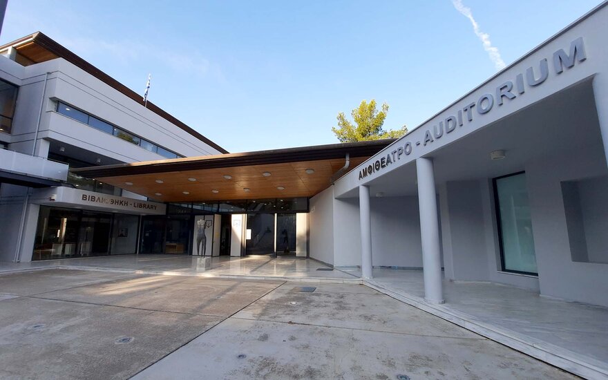 • Bibliothek und Auditorium auf dem Campus der Universität Athen