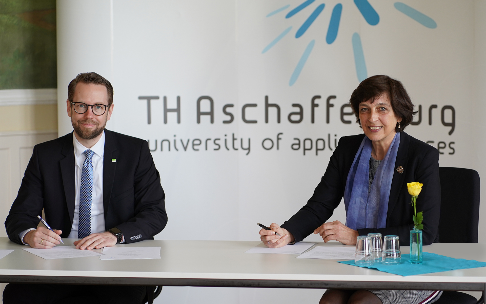 Ab dem kommenden Wintersemester bietet die TH Aschaffenburg den Bachelorstudiengang „Hebammenkunde“ an. Als einem wichtigen Kooperationspartner vor Ort wird die Hochschule dabei mit dem Klinikum Aschaffenburg zusammenarbeiten. Am 12. April haben Sebastian Lehotzki, der Geschäftsführer des Klinikums, und TH-Präsidentin Prof. Dr. Eva-Maria Beck-Meuth den Vertrag unterzeichnet und damit die Zusammenarbeit besiegelt.