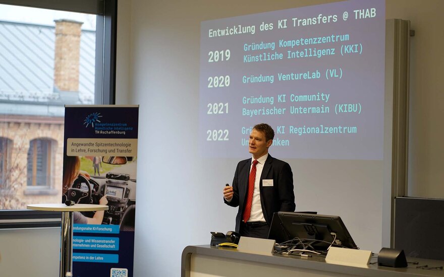 Mit dem Kompetenzzentrum KI (KKI) bündelt die TH Aschaffenburg ihre KI-Expertise in Forschung, Lehre und Transfer. Wissenschaftlerinnen und Wissenschaftler des KKI stärken im KI Regionalzentrum Unterfranken mit ihrem Know-how das nachhaltige Wachstum des Wirtschafts- und Technologiestandortes Bayern.