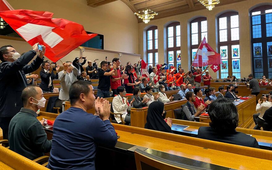 Die Fachjury bewertete am Ende die Arbeiten aller vier Tage und auch die Qualität der Messergebnisse ging in die Gesamtbewertung ein. Die Sieger wurden in einer feierlichen Zeremonie im Ratssaal der Stadt Bern geehrt. Der erste Platz und damit die Goldmedaille ging an China, Platz zwei an die Schweiz und Platz drei an Südkorea.