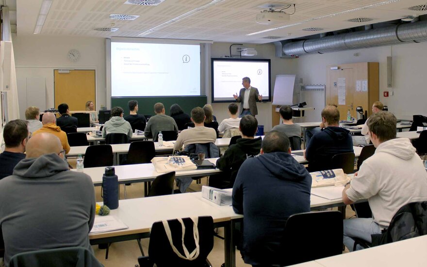 • Prof. Dr. Ivo Schäfer, Vizepräsident für Studium, Lehre und Internationales begrüßt die neuen berufsbegleitenden Studierenden.