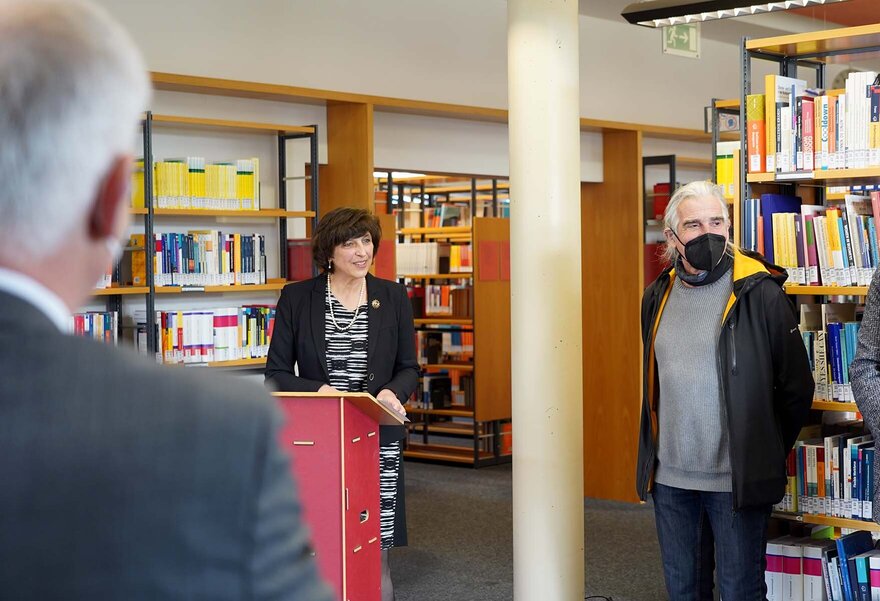 • TH-Präsidentin Prof. Dr. Eva-Maria Beck-Meuth begrüßt die Anwesenden und dankt den Spendern