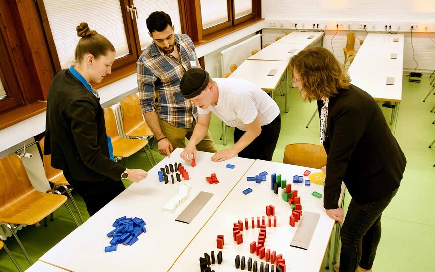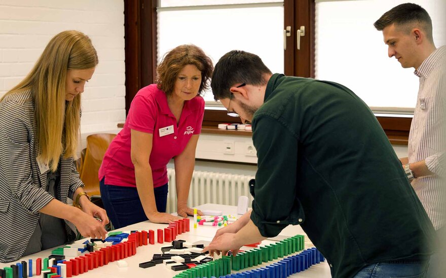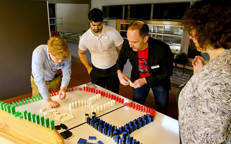 Die Veranstaltung bot den Teilnehmerinnen und Teilnehmern eine Vielzahl interaktiver spielerischer Aktivitäten. Bei einer Domino-Challenge beispielsweise bauten 12 Gruppen aus Studierenden und Unternehmensvertreterinnen und -vertretern kreative Kunstwerke. Zudem hatten die Studierenden bei einem Quartettspiel die Möglichkeit, sich in persönlichen Gesprächen mit den Anwesenden auszutauschen und Kontakte für Bachelorarbeiten, Praktika oder Festanstellungen zu knüpfen.