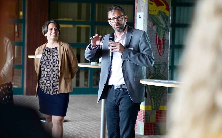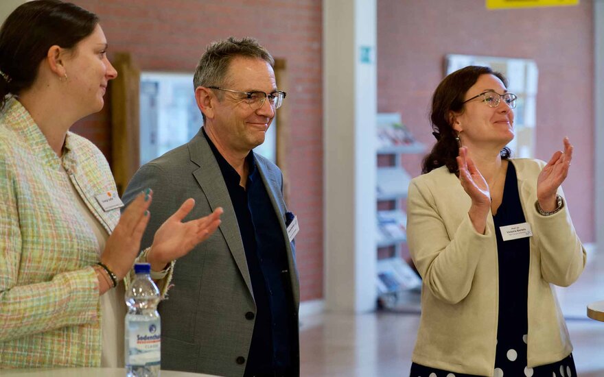• Bürgermeister Bernd Kahlert und Prof. Dr. Victoria Bertels (rechts)