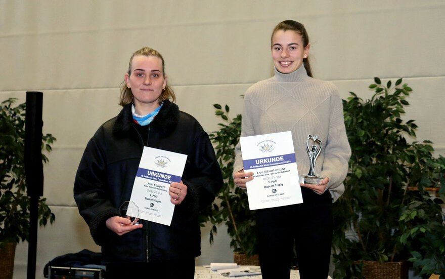 • Jule Limpert (links) von der TH Aschaffenburg freut sich über ihren zweiten Platz bei der Students Trophy (rechts neben ihr die Erstplatzierte Lea Blandamura)
