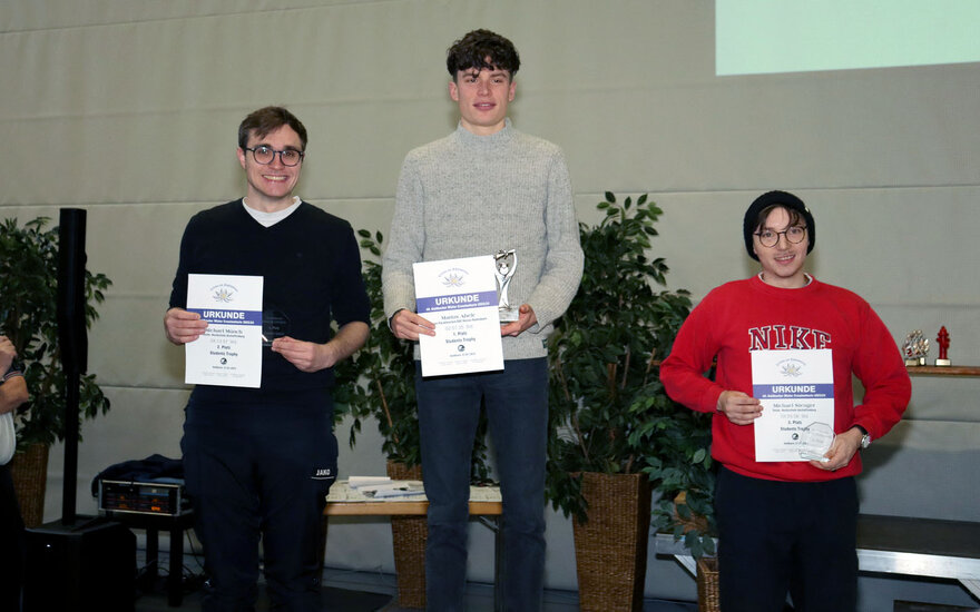 • Michael Münch (links) und Michael Stenger (rechts) von der TH Aschaffenburg freuten sich über ihre guten Platzierungen bei der Students Trophy (in der Mitte der Erstplatzierte Marius Abele)