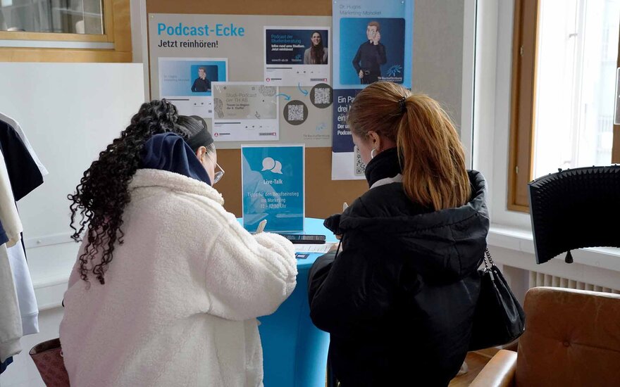 An zahlreichen Infoständen erhielten Interessierte einen umfassenden Überblick über die Studienangebote. Neben Professorinnen und Professoren standen insbesondere Studierende und Alumni für Gespräche zur Verfügung, beantworteten Fragen und gaben persönliche Einblicke in ihren Studienalltag. Außerdem informierten International Office und Career Service sowie der Bereich Gleichstellung – Familie – Vielfalt über ihre Unterstützungsangebote. Auch die Hochschulbibliothek öffnete ihre Türen.