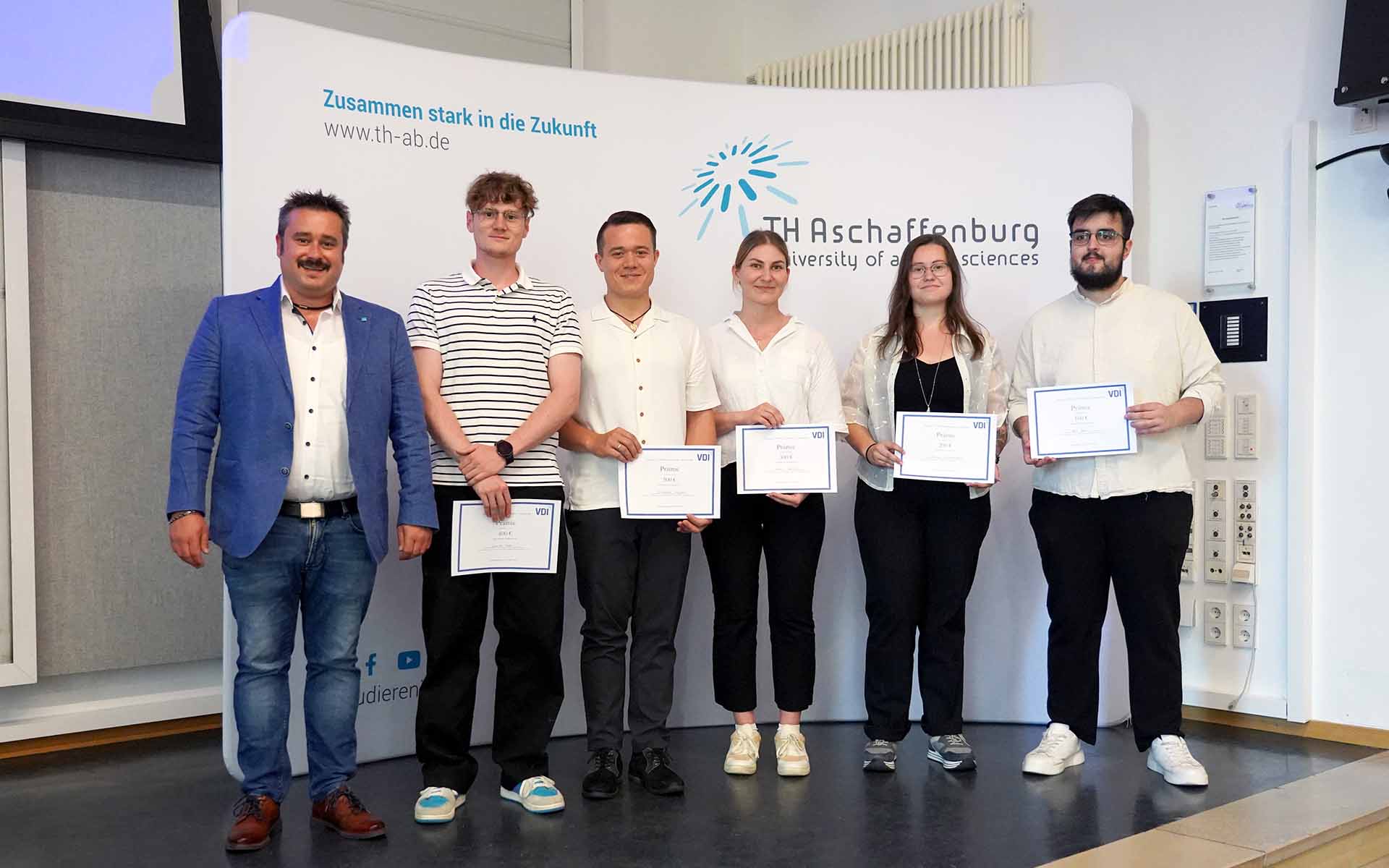 Im Rahmen einer feierlichen Veranstaltung zum 100-jährigen Bestehen des Vereins Deutscher Ingenieure (VDI) Unterfranken (Bezirksgruppe Aschaffenburg) wurden am vergangenen Freitag die besten Poster von Studierenden aus dem Masterseminar der TH Aschaffenburg prämiert.