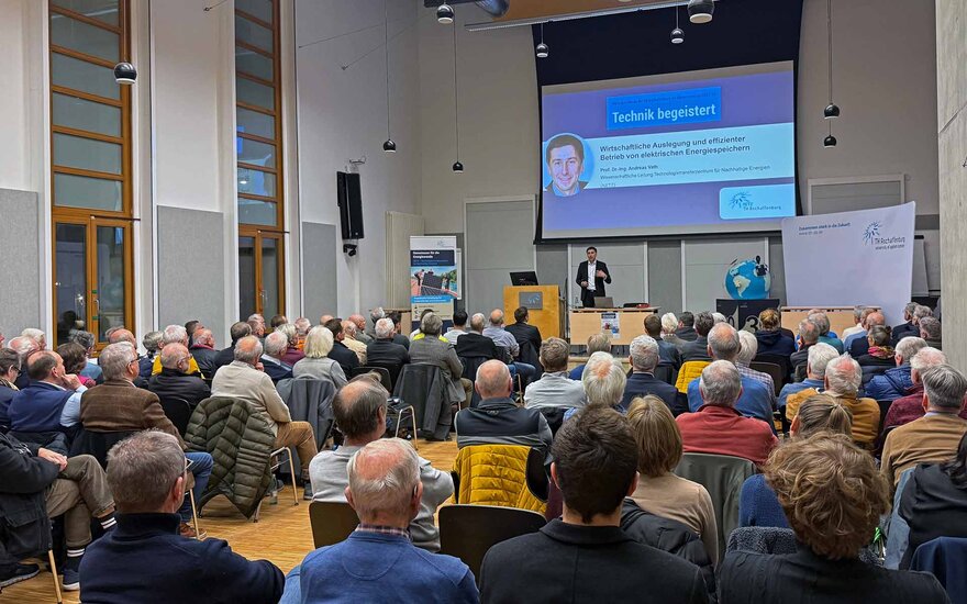 Zum Abschluss beantworteten die Professoren zahlreiche Fragen aus dem Publikum und diskutierten gemeinsam mit den Besucherinnen und Besuchern über Chancen und Herausforderungen der Energiespeicherung.