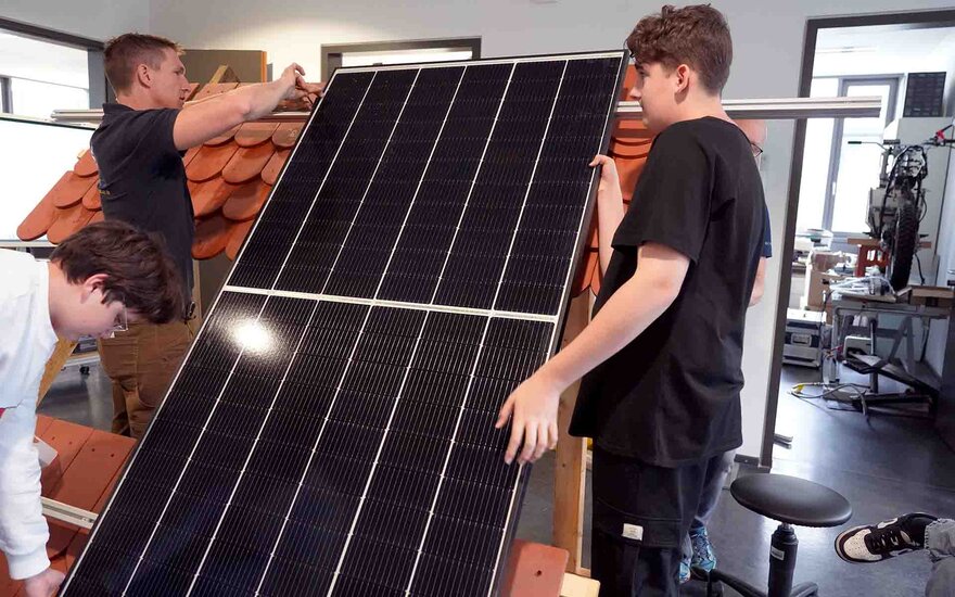 Schüler installieren PV-Module beim Technik-trifft-Umwelt-Camp