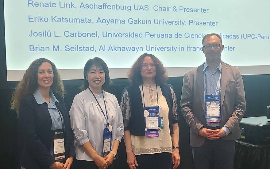 Die Session zeichnete sich durch die Vereinigung der Perspektiven von Global Citizenship-Expertinnen und Experten von vier Kontinenten – Europa, Asien, Amerika and Afrika – aus. Die Co-Rednerinnen und Redner von Professorin Link stammten von der Aoyama Gakuin University (AGU) in Tokio, der Universidad Peruana de Ciencias Aplicadas (UPC) in Lima sowie der Al Akhawayn University (AUI) in Marokko. Global Citizenship beinhaltet das bewusste Agieren als Weltbürgerin oder Weltbürger und die Übernahme von Verantwortung für die Weltgemeinschaft. Ihre eigenen Fähigkeiten im Bereich Global Citizenship können Studierende an der TH Aschaffenburg im allgemeinwissenschaftlichen Wahl(pflicht)modul „Perspectives of Global Citizenship“ (vgl. S. 64ff. Modulhandbuch) ausbauen, das von Marcel Rother und Prof. Dr. Renate Link jedes Sommerssemester angeboten wird. Im Rahmen der diesjährigen Diversity Days waren alle Hochschulangehörigen wie schon im Vorjahr dazu eingeladen, in das Fach hineinzuschnuppern.