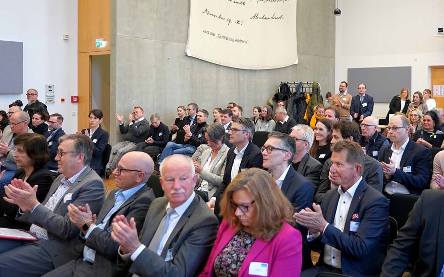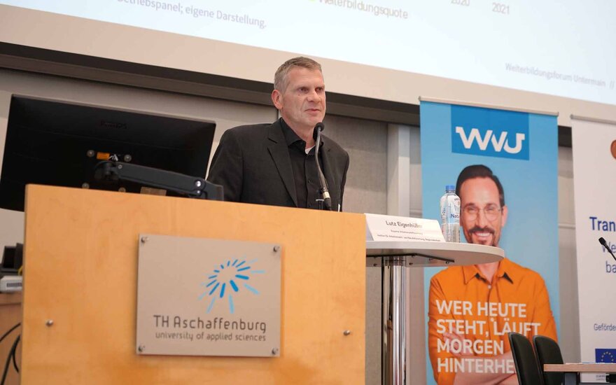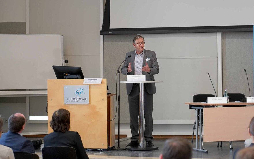 Nach den Begrüßungsworten von Prof. Dr. Eva-Maria Beck-Meuth, Präsidentin der TH Aschaffenburg, und dem Aschaffenburger Oberbürgermeister Jürgen Herzing, folgte ein Impulsvortrag von Lutz Eigenhüller, Experte für Arbeitsmarktforschung am Institut für Arbeitsmarkt- und Berufsforschung, Regionaleinheit Bayern.