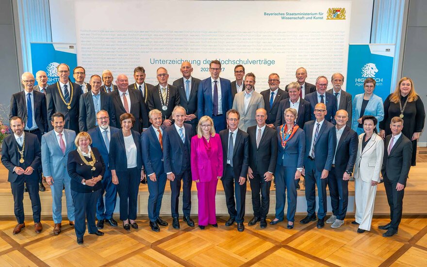 In der Akademie der Wissenschaften fand am 21.9.2023 in München die feierliche Unterzeichnung der individuellen Hochschulverträge durch Wissenschaftsminister Markus Blume und die Leitungen der 33 staatlichen bayerischen Universitäten, Hochschulen für angewandte Wissenschaften und Technischen Hochschulen sowie Kunsthochschulen statt. Nach dem Inkrafttreten des Bayerischen Hochschulinnovationsgesetzes (BayHIG) und der Unterzeichnung der Rahmenvereinbarung Hochschulen 2023 bis 2027 – Agilität, Exzellenz und Innovation für Bayerns Hochschullandschaft ist dies der nächste Meilenstein für die erfolgreiche Weiterentwicklung der bayerischen Hochschullandschaft.