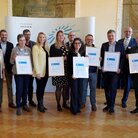 Gruppenbild mit zwei Jungen mit Urkunde, zwei Männer und zwei Frauen