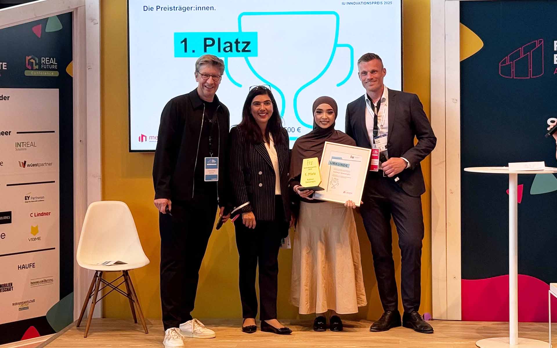 Der Innovationspreis wird von der IU Internationalen Hochschule gespendet und fördert kreative, wissenschaftlich fundierte Lösungen für aktuelle Herausforderungen. In diesem Jahr stand die Immobilienwirtschaft im Fokus: Gesucht wurden zukunftsweisende Innovationen und neue Perspektiven im Bereich Dekarbonisierung, smarte Energielösungen, nachbarschaftliches Miteinander sowie neue Service- und Kommunikationslevel. Initiiert wurde der Preis in Kooperation mit der meravis Immobiliengruppe, die die Prämie von insgesamt 5.750 Euro bereitstellte.