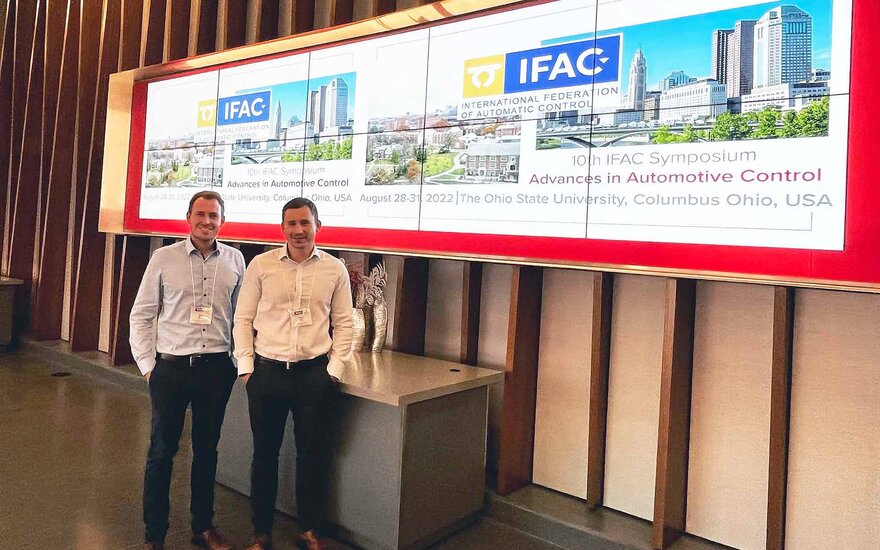 Vom 29.08. bis zum 31.08.2022 fand die IFAC/ das AAC in Columbus, Ohio statt. Die Konferenz der International Federation of Automatic Control fand am Campus der Ohio State University statt. Zum internationalen Publikum aus dem Bereich der Fahrzeugtechnik und Regelungstechnik zählten auch zwei Doktoranden der TH AB: Timm Sauer und Manuel Gorks. Sowohl für die Wissenschaft als auch für die Industrie war die Konferenz von großer Relevanz: So wurden Vorträge von Vertreterinnen und Vertretern verschiedener internationaler Universitäten sowie global agierender Automobilkonzerne zu Themen wie autonomem Fahren und neuen Antriebstechnologien (Elektrofahrzeuge) gehalten.