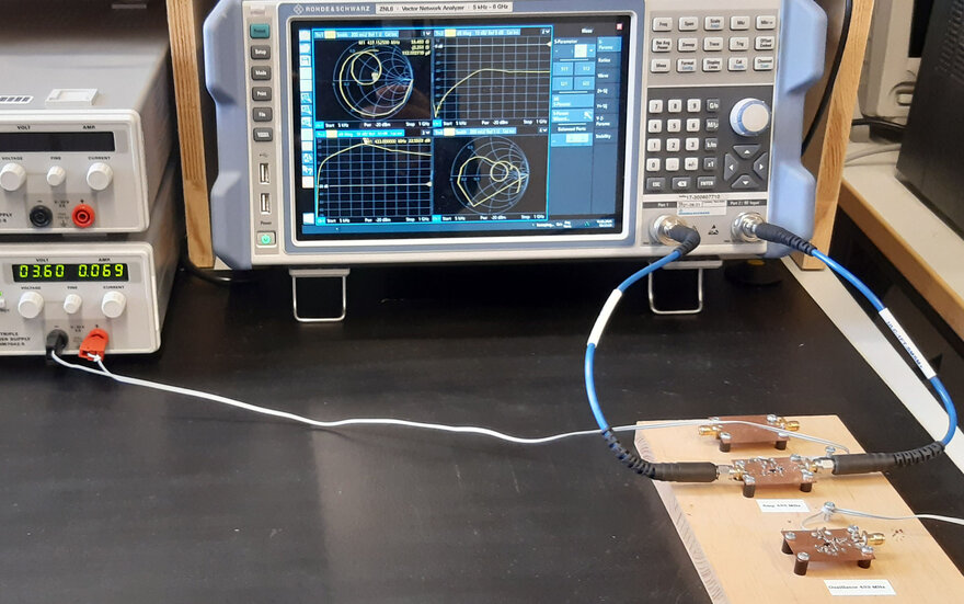Von Studierenden durchgeführte Entwicklung eines 433 MHz HF-Verstärkers mit einer Verstärkung von 22 dB.