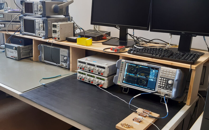 Modernste Hochfrequenztechnik, Netzwerkanalysatoren, Spektrumanalysatoren und Signalgeneratoren ermöglichen professionelles Arbeiten.