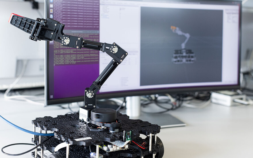 Leistungsfähige Robotersysteme sind für die Wettbewerbsfähigkeit der Industrie und auch für die Servicerobotik im privaten Umfeld entscheidend. Im Labor für Robotics and Internet of Things ermöglichen wir Studierenden praxisnahes Lernen auf dem Gebiet der robotikrelevanten Softwareentwicklung. Unternehmen bieten wir zahlreiche Anknüpfungspunkte für gemeinsame Forschungsarbeiten.