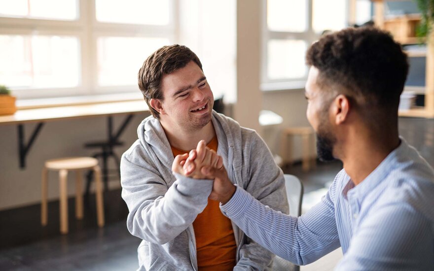 Heilpädagogische Einrichtungen: Als Sozialarbeiterin oder Sozialarbeiter arbeitest du hier in Wohngruppen oder Tageseinrichtungen für Menschen mit Behinderung. Dabei förderst du ihre Alltagskompetenz.